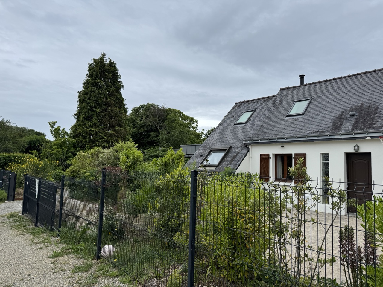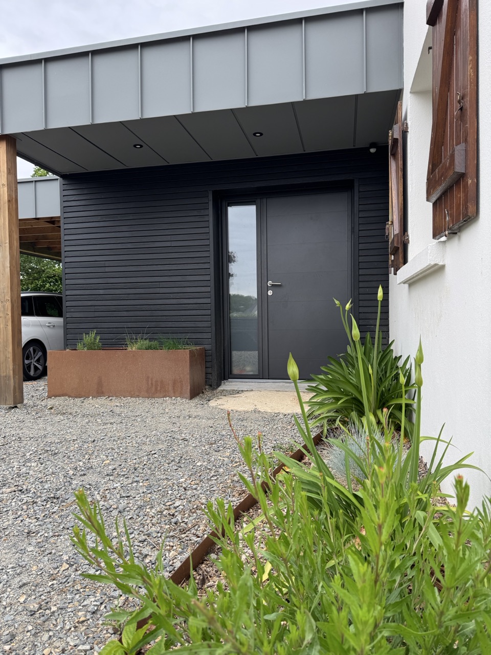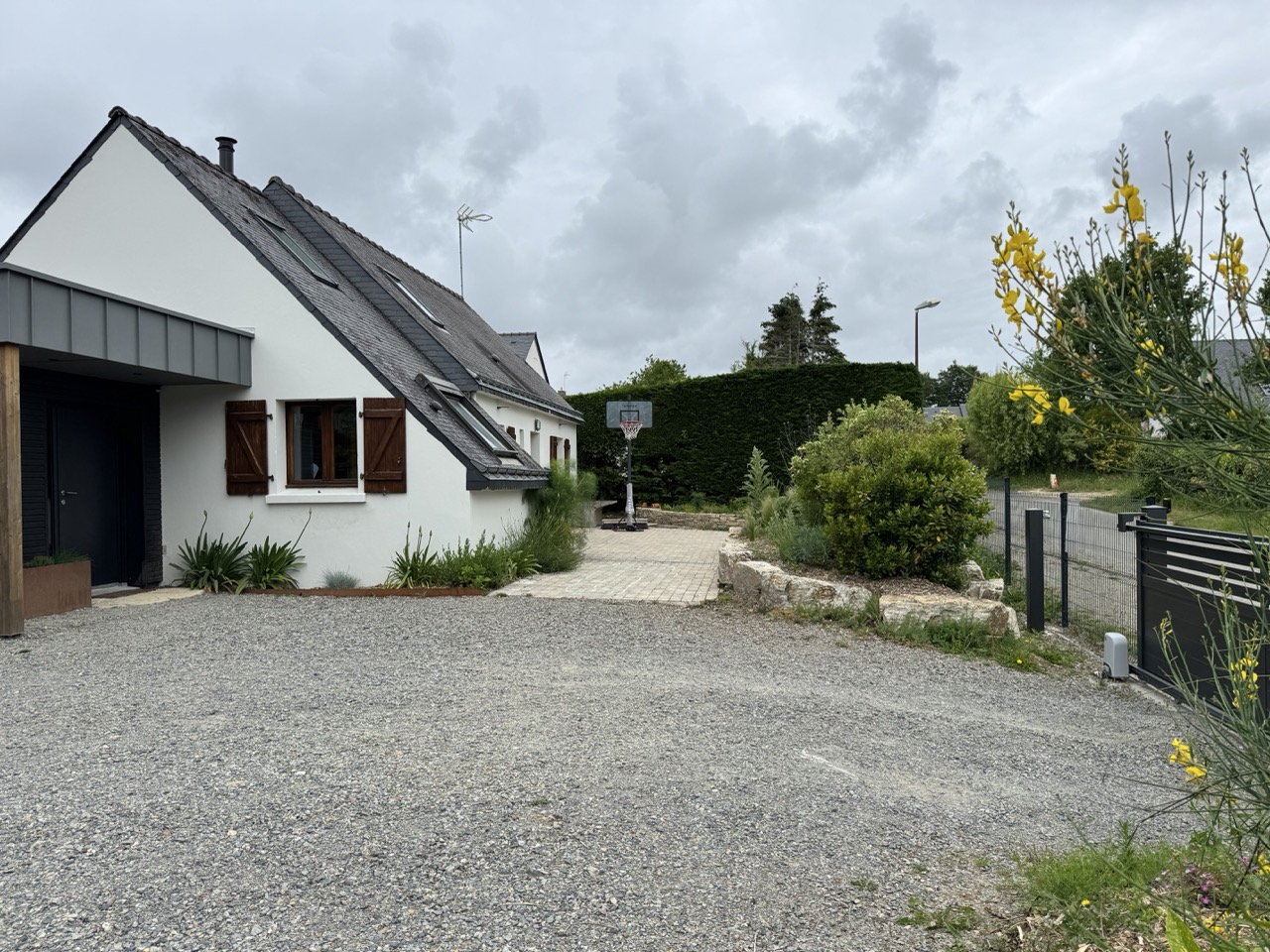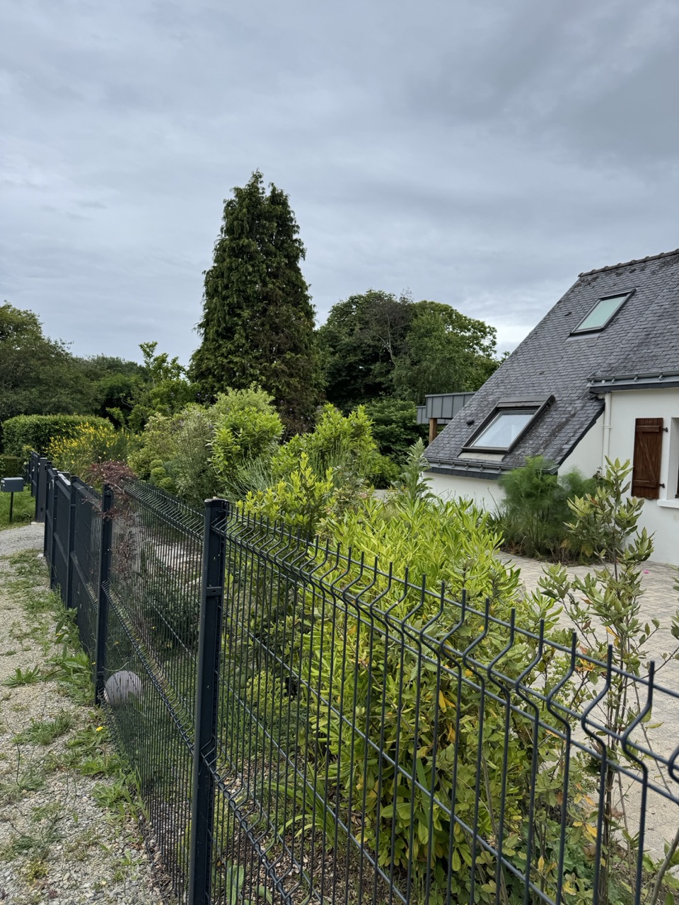Afin de protéger la maison des vues depuis la route, un brise-vue a été installé. Une clôture et un portail ont été intégrés pour structurer l’accès.
