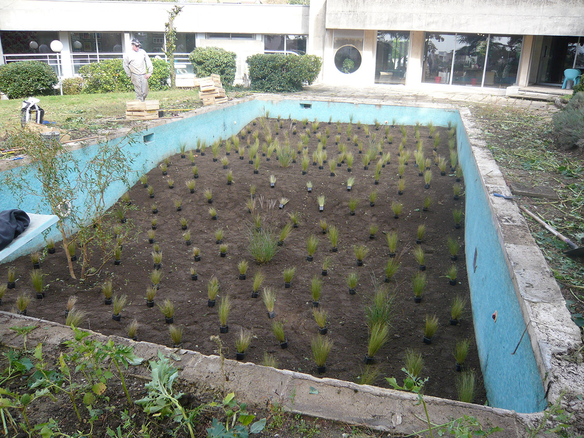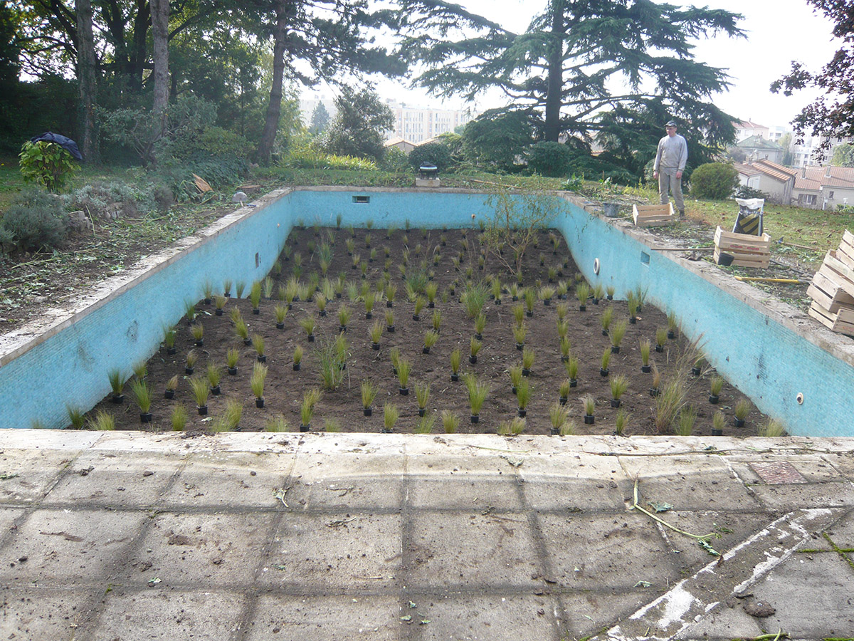 Le choix des graminées évoque le mouvement de l’eau, et donne une nouvelle vie à cet